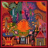 destacando los trabajos de estambre y chaquira de los huicholes, los textiles